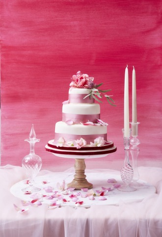 お花とケーキのカラーをリンクさせてケーキをドレスアップ