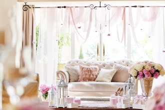 ソファを生かした高砂にもデコレーションにこだわって